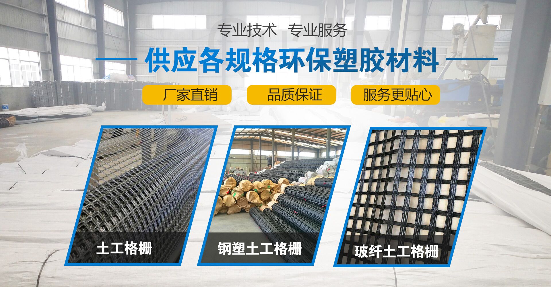 鋼塑土工格柵以高強鋼絲(或其他纖維),經(jīng)特殊處理,與聚乙烯(PE),并添加其他助劑,通過擠出使之成為復(fù)合型高強抗拉條帶,且表面有粗糙壓紋,則為高強加筋土工帶。由此單帶,經(jīng)縱、橫按一定間距編制或夾合排列,采用特殊強化粘接的熔焊技術(shù)焊接其交接點而成型,則為加筋土工格柵。